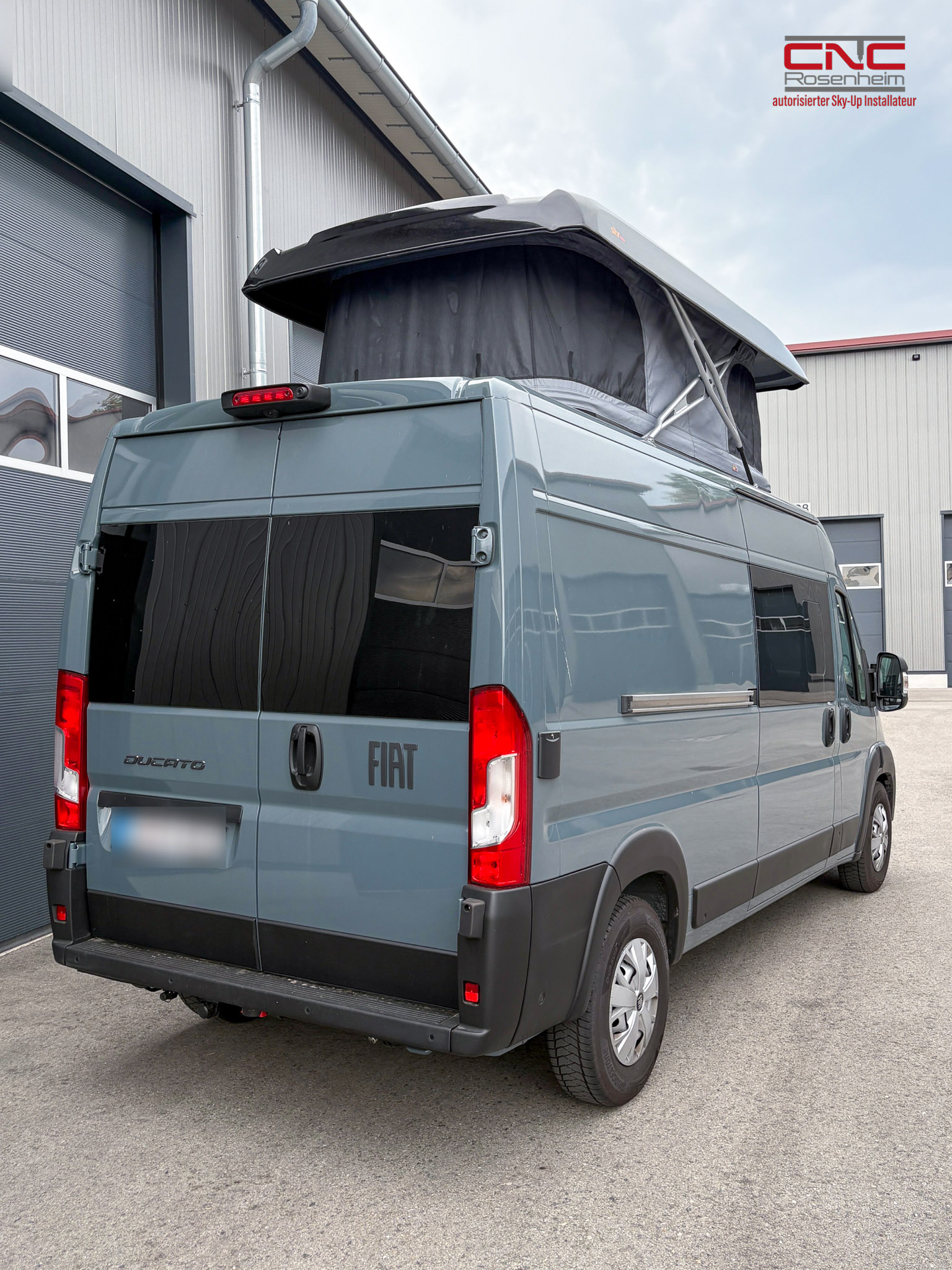 Entdecke unsere umgebauten Kundenfahrzeuge, darunter Kastenwägen und Camper, mit Aufstelldächern, Markisen, Dachfenstern und Photovoltaikanlagen.