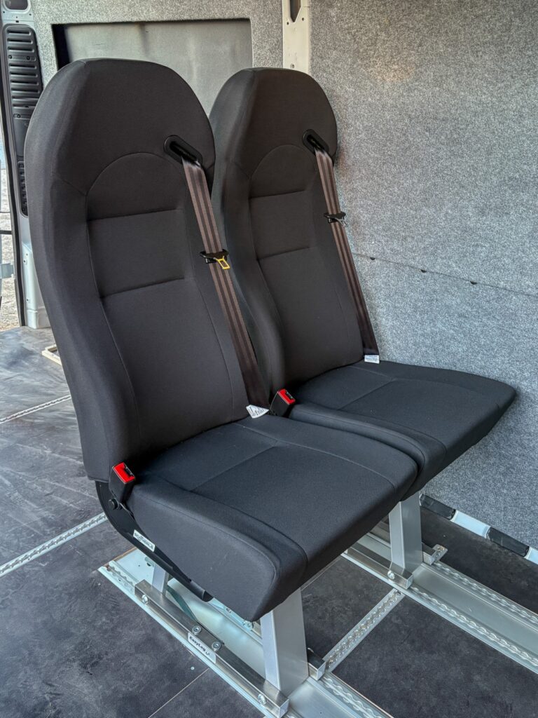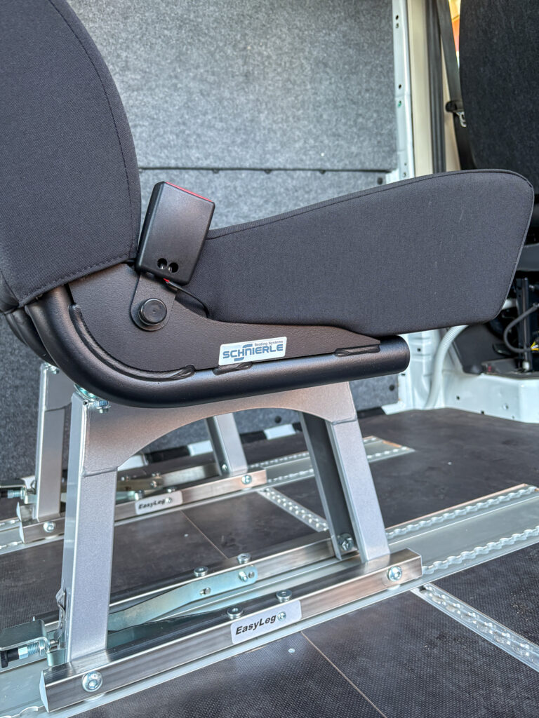 Der Einbau erfolgt idealerweise vor Beginn des Camper‑Ausbaus. In diesem Zustand können Sitzpositionen präzise geplant, Befestigungspunkte sauber integriert und der weitere Ausbau konsequent darauf abgestimmt werden. Dies ermöglicht eine technisch saubere Umsetzung und maximale Flexibilität im Ausbaukonzept.